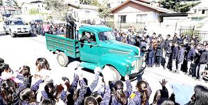 Los escolares despidieron la camioneta del Padre Hurtado