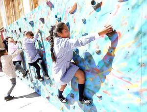 Niños disfrutan con todo la nueva pared activa