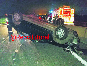 Chofer resultó herido tras volcar en la ruta Nuevo Acceso