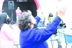 Izan la bandera evangélica frente a la Municipalidad de San Antonio